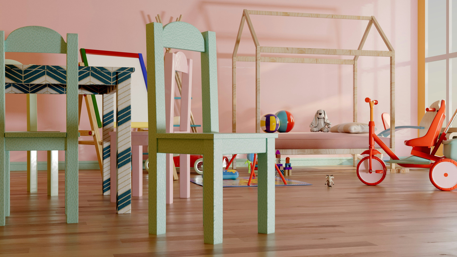 Ett rum med plats för både lek och ro