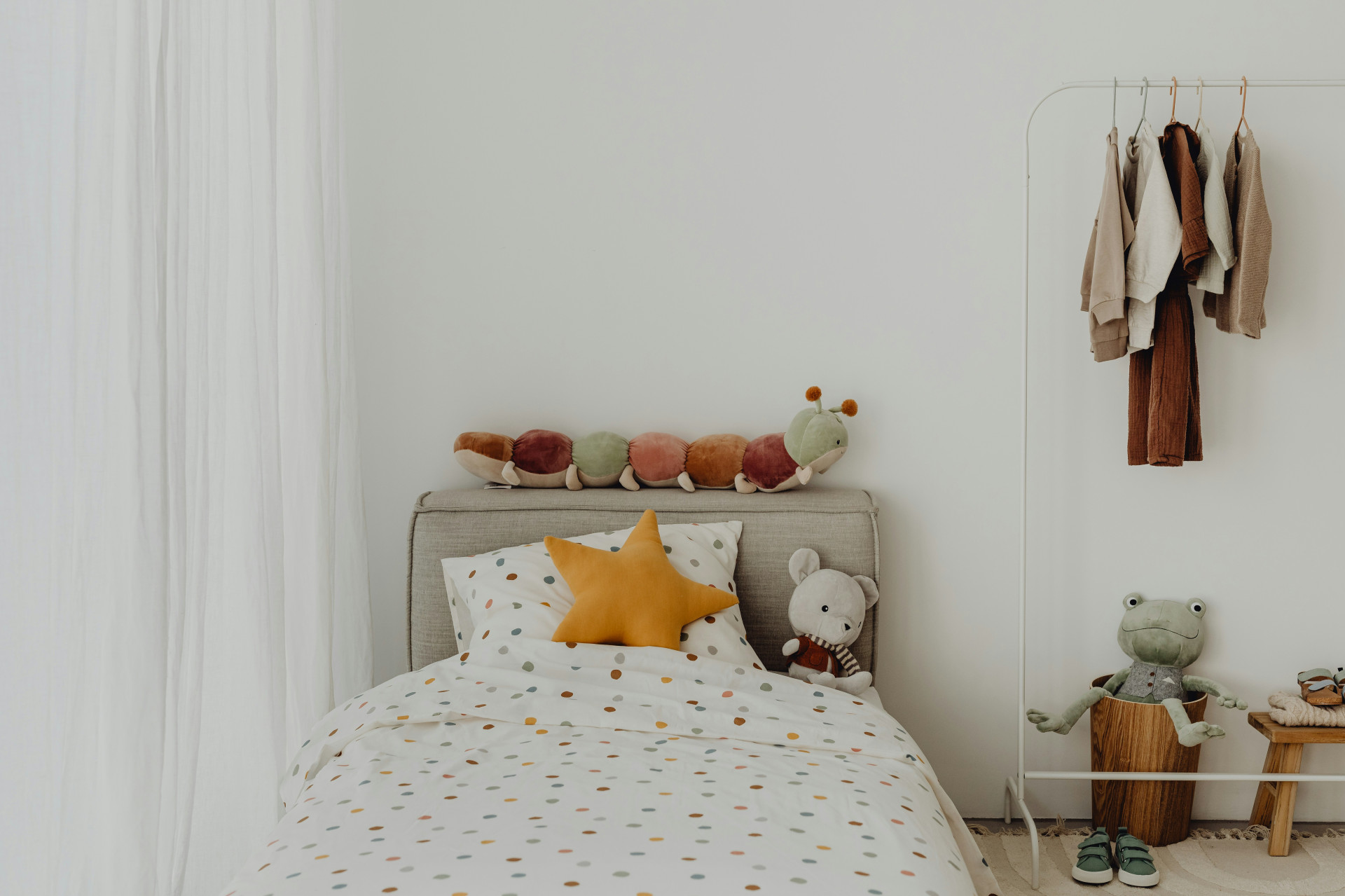 Sängen ska vara stabil och säker. För spädbarn rekommenderas en fast madrass utan kuddar, gosedjur eller lösa filtar, eftersom det minskar risken för överhettning och olyckor. För lite äldre barn kan en favoritnalle eller ett mjukt täcke ge extra trygghet, men undvik att sängen blir överfull.